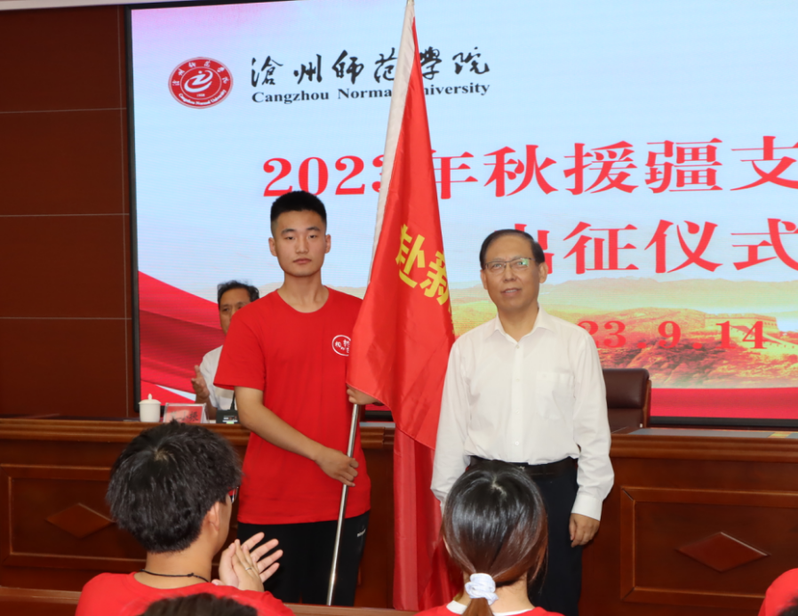 高颖寄语援疆学子:“好儿女志在四方,有志者奋斗无悔。接过援疆实习的这面旗帜,更要扛起肩上的责任。你们代表着十大体育外围平台app,你们是十大体育外围平台app的名片,希望你们在实习过程中,敬业爱生,扎实工作,虚心学习,拼搏进取,为沧州争光、为师院争光!”