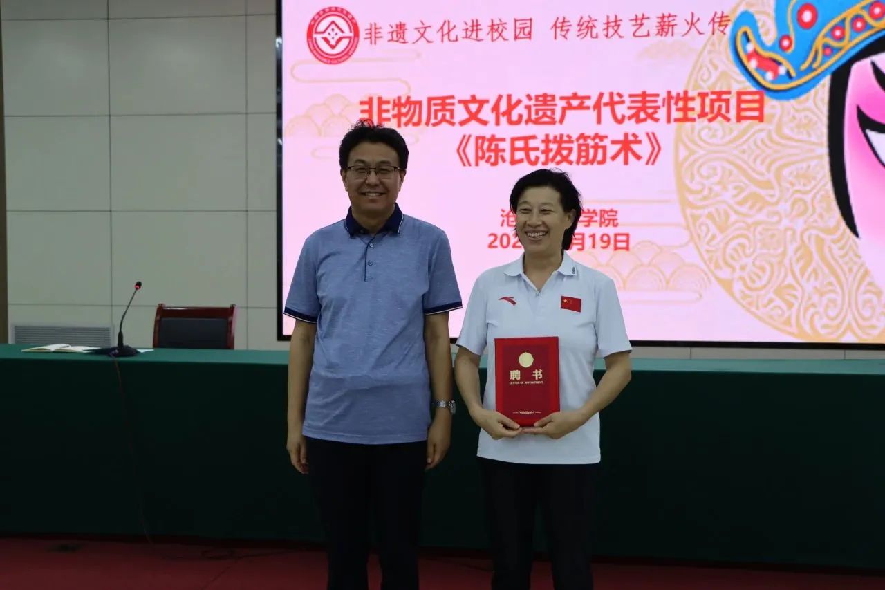 9月19日,作为掌门人的陈秀云女士及其嫡传弟子们来到外围官网,向外围官网师生展示非遗文化——陈氏拨筋术。党委书记云电军向陈秀云颁发客座教授证书。党委常委、副校长高颖出席仪式。