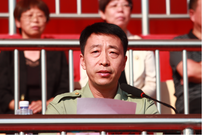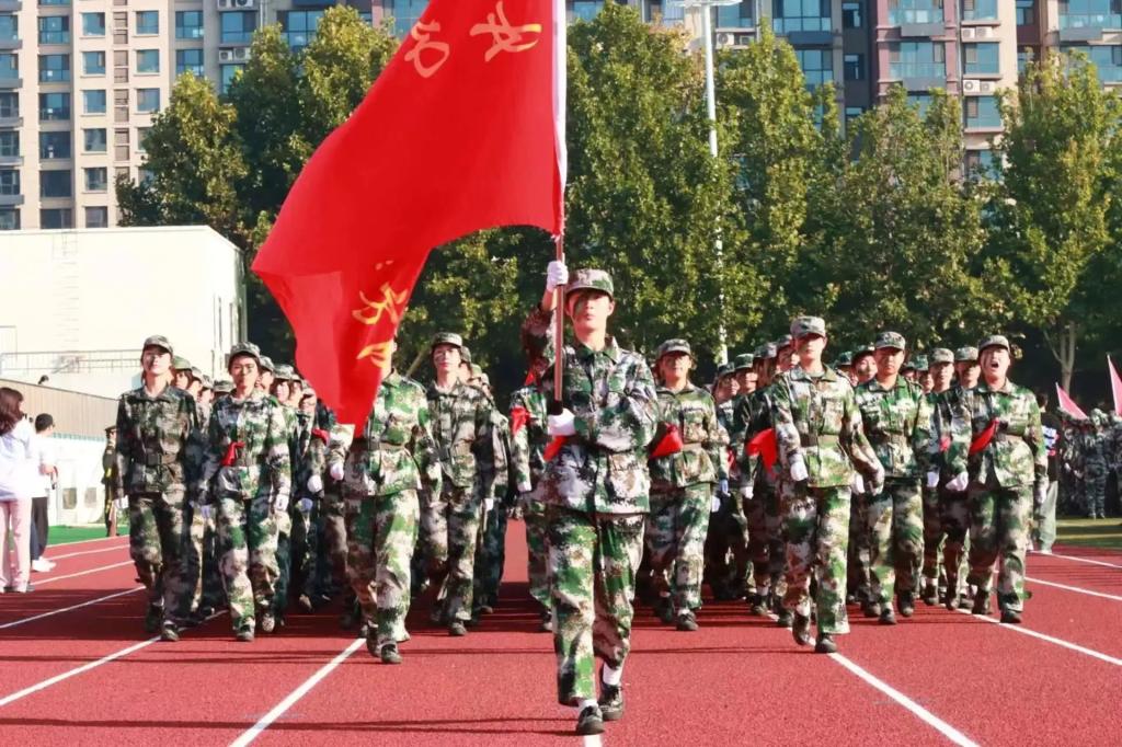 党委书记云电军在相关人员陪同下,检阅了各方阵队列。同学们军容整肃、纪律严明,以整齐划一的嘹亮口号向校领导致意。“同学们好!”“书记好!”“同学们辛苦了!”“强国有我,为校争光!”的口号声响彻操场。