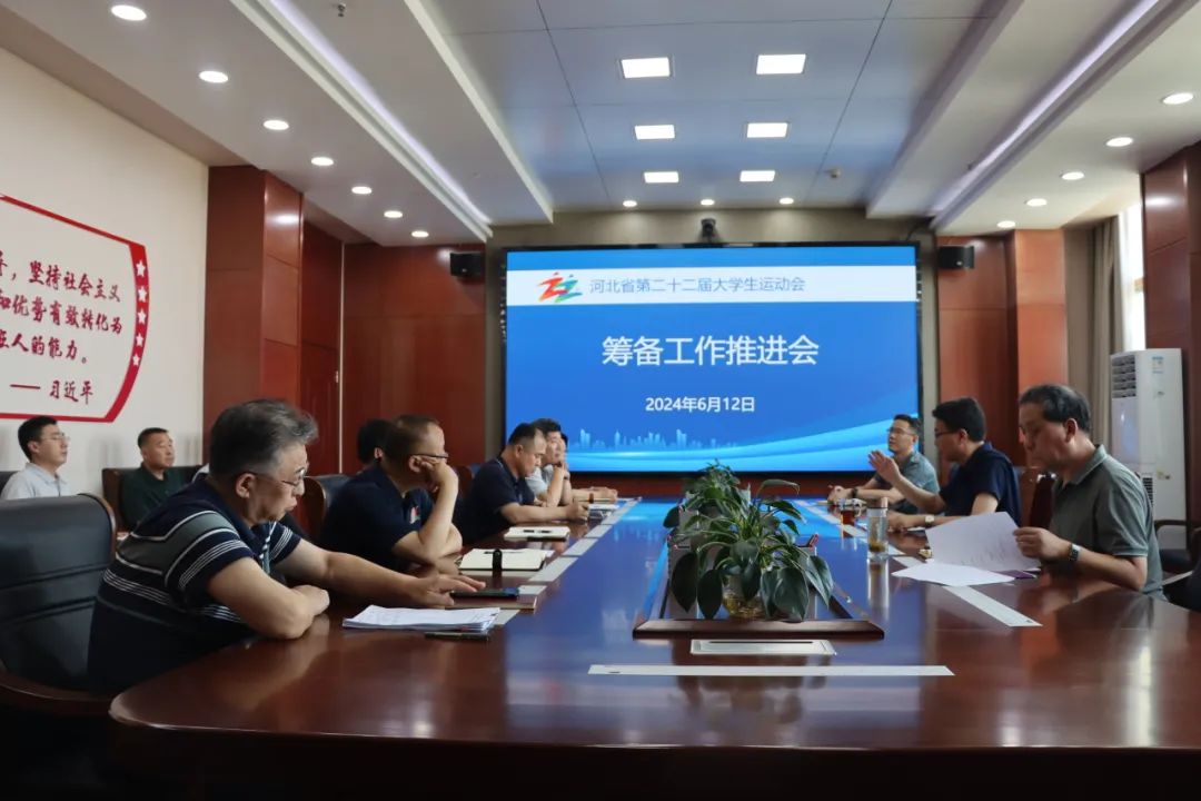 6月12日,外围官网召开河北省第二十二届大学生运动会筹备工作推进会,党委书记云电军,党委常委、副校长范小振出席会议。