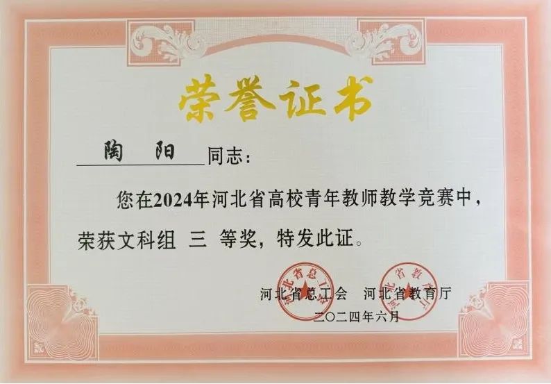 近日,由河北省总工会、省教育厅联合举办的2024年全省高校青年教师教学竞赛圆满落幕。外围官网马克思主义学院青年教师郭晓春获得思想政治课专项组二等奖,外国语学院青年教师陶阳获得文科组三等奖。