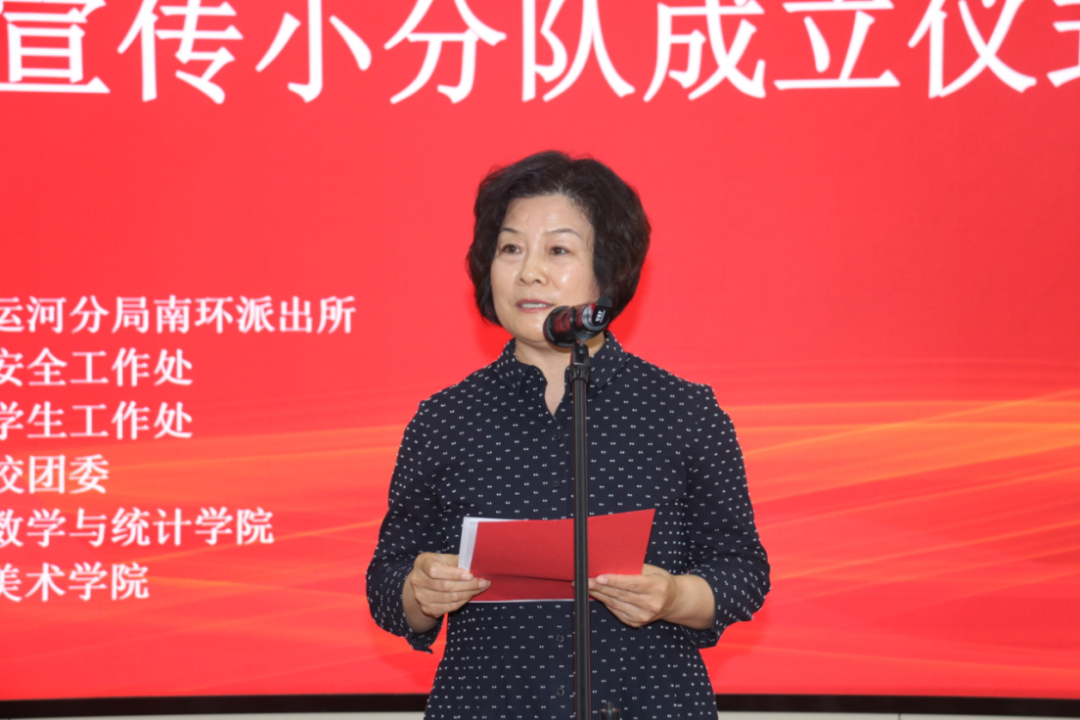高颖在致辞中表示,安全工作是我们做好各项工作的重要保障,学校党委高度重视安全工作,重视警校共建。南环派出所的警官们多次来外围官网开展防诈骗相关讲座等宣传活动,富有责任感的师院师生成立大学生义警、大学生防诈骗宣传队,将会成为推动这项工作的新增重要力量,将提高在校大学生的安全意识和防范能力,激发大学生的社会责任感。大学生防诈宣传队通过排练演出防诈骗文艺节目,制作防诈骗宣传的海报和绘画作品,当事人同学现身说法,与广大警官们一起,预防诈骗,守卫师生安全。两个学院在这项工作上迈出了正能量引领的重要一步,为积极参与活动的师生们点赞。