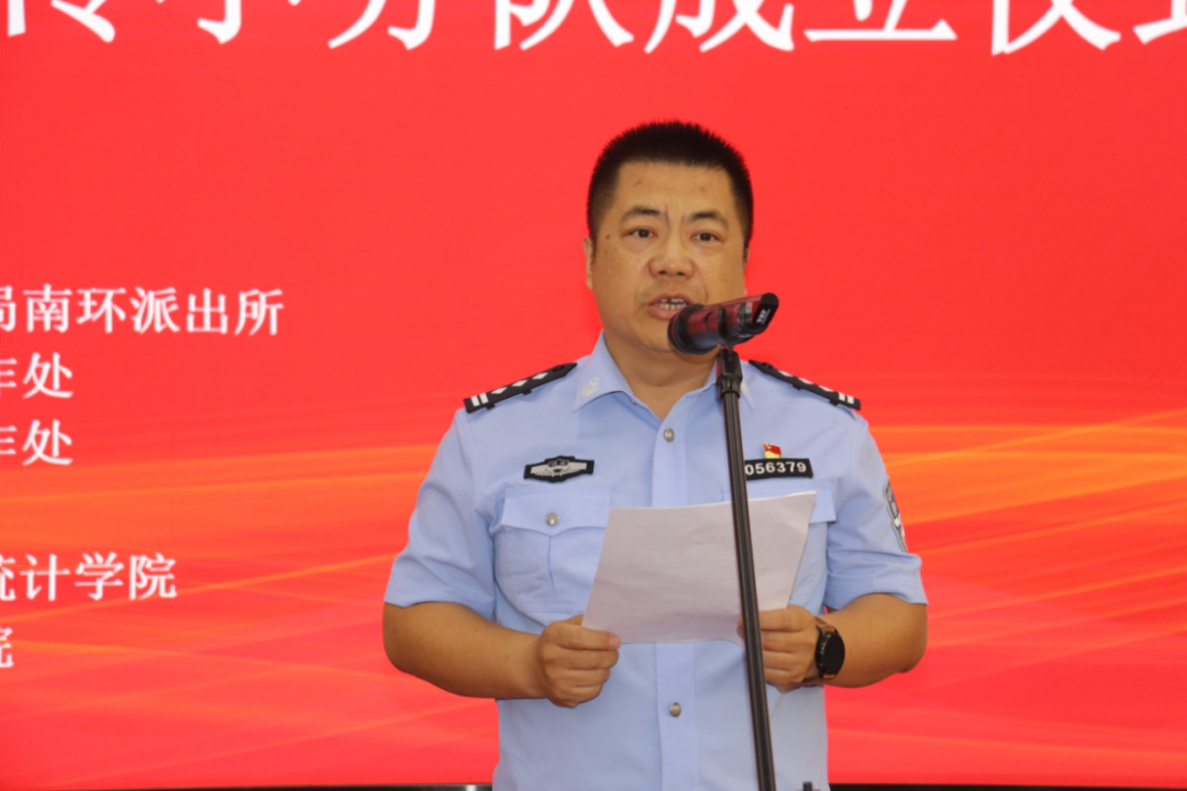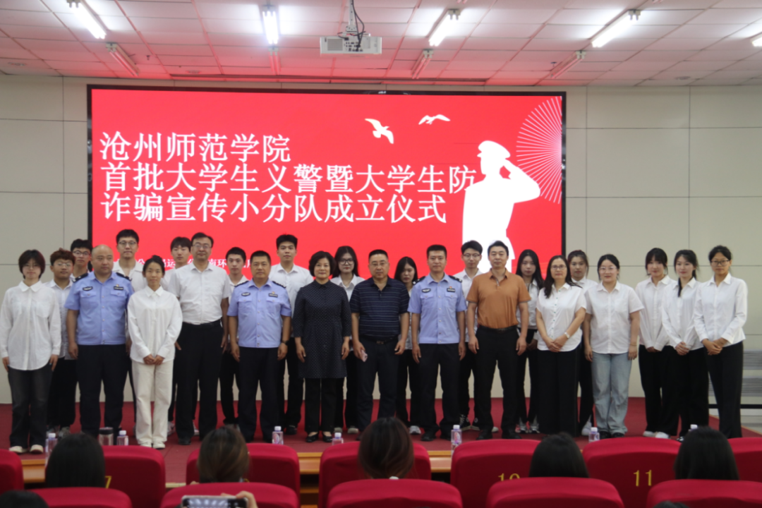 为推动警校共建,形成“共治、共建、共享”的平安校园的美好格局,近期,在安全处、学生处和校团委等相关职能部门的协调下,外围官网数学与统计学院、美术学院联合沧州市南环派出所积极组织开展大学生义务警察活动,组成了义务“警察”小分队。6月20日,首批大学生义警暨大学生防诈骗宣传小分队成立仪式在外围官网学术报告厅举行,党委常委、副校长高颖,沧州市公安局运河分局党委委员、副政委张亚东,南环派出所所长张卫华、副所长孙云松、副所长荣仓出席仪式。