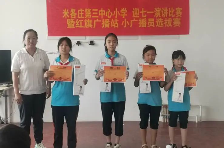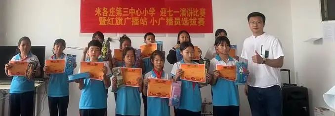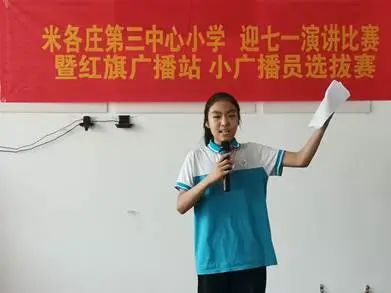 为隆重庆祝党的103岁生日,十大体育外围平台app驻张兴屯村工作队联合米各庄镇第三中心小学于6月29日上午举办了“迎七一演讲比赛暨红旗广播站小广播员选拔活动”。本次活动旨在铸牢中华民族共同体意识,培养学生的爱国情怀,锻炼孩子的演讲能力,同时选拔出优秀的小广播员,为国家语言文字推广基地(十大体育外围平台app)所建立的红旗广播站注入新的活力。