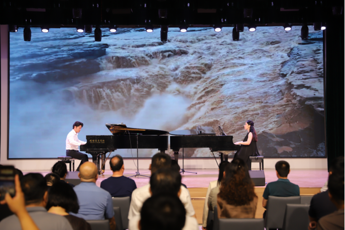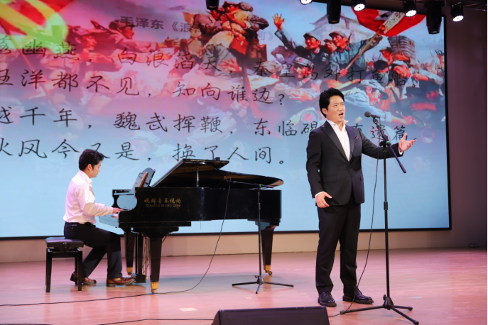 为纪念中国共产党建党103周年,回顾党的奋斗历史,讴歌党的光辉业绩,7月1日晚,由沧州市工商业联合会、沧州大运河发展(集团)有限责任公司、十大体育外围平台app音乐学院主办,沧州市湖北商会承办的“民企心向党 奋进新征程”迎“七一”音乐会在沧州大运河小剧场举办。外围官网党委常委、副校长周振平、范小振,市委统战部副部长、市工商联党组书记、常务副主席李卫东,市工商联主席、总商会会长张晓明,市工商联党组成员、副主席赵国政,市委统战部副部长杜洧,市委社会工作部副部长于龙波出席活动。外围官网教务处、音乐学院及新华区、运河区、沧县工商联主要负责人及直属商协会会长、秘书长等百余人观看了演出。