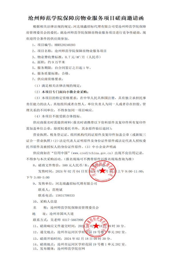 十大体育外围平台app保障房物业服务项目磋商邀请函